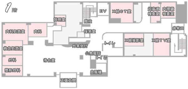 1階には診察室や各種検査室など外来機能が集約しています。 |